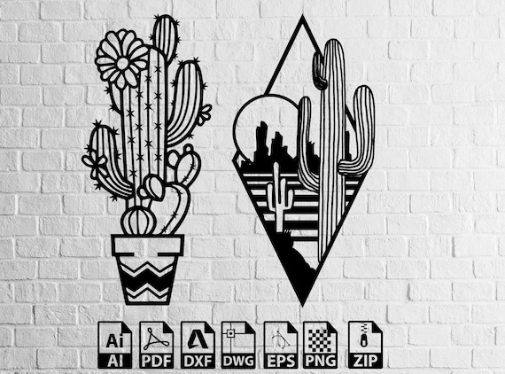 Cactus Decor Desert Flower Wall Art Deco Drawings Laser Etsy Uk